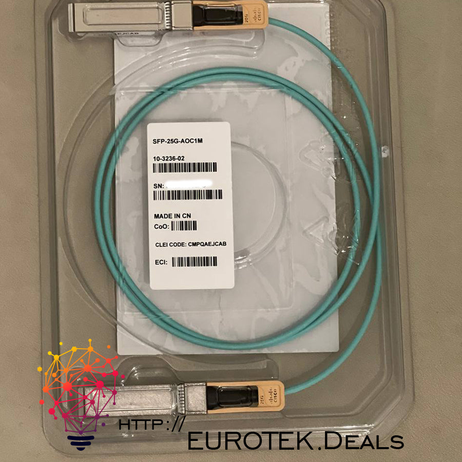 New Factory Sealed Cisco SFP-25G-AOC1M, a 25G SFP28 Active Optical Cable for High-Speed Network Connections